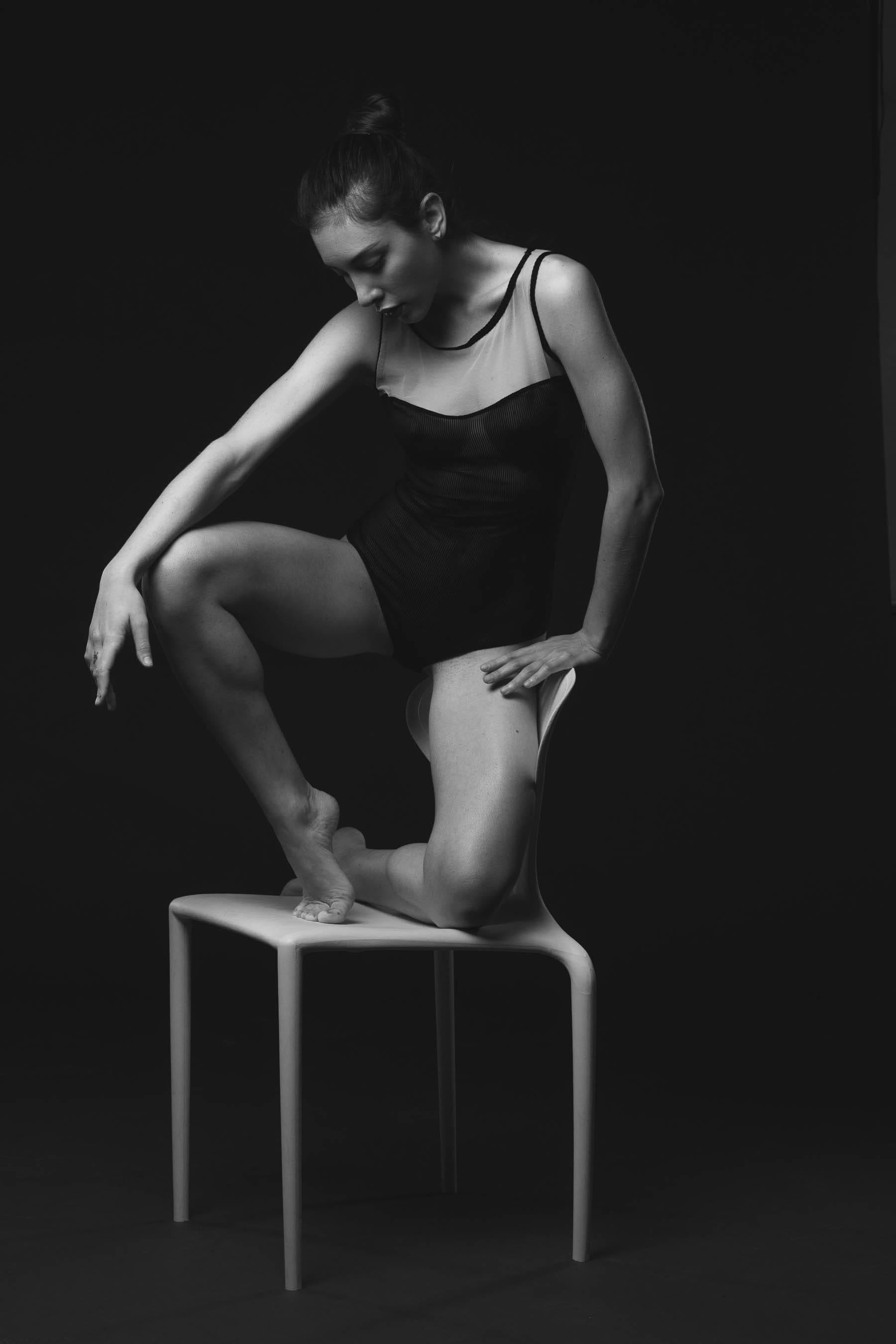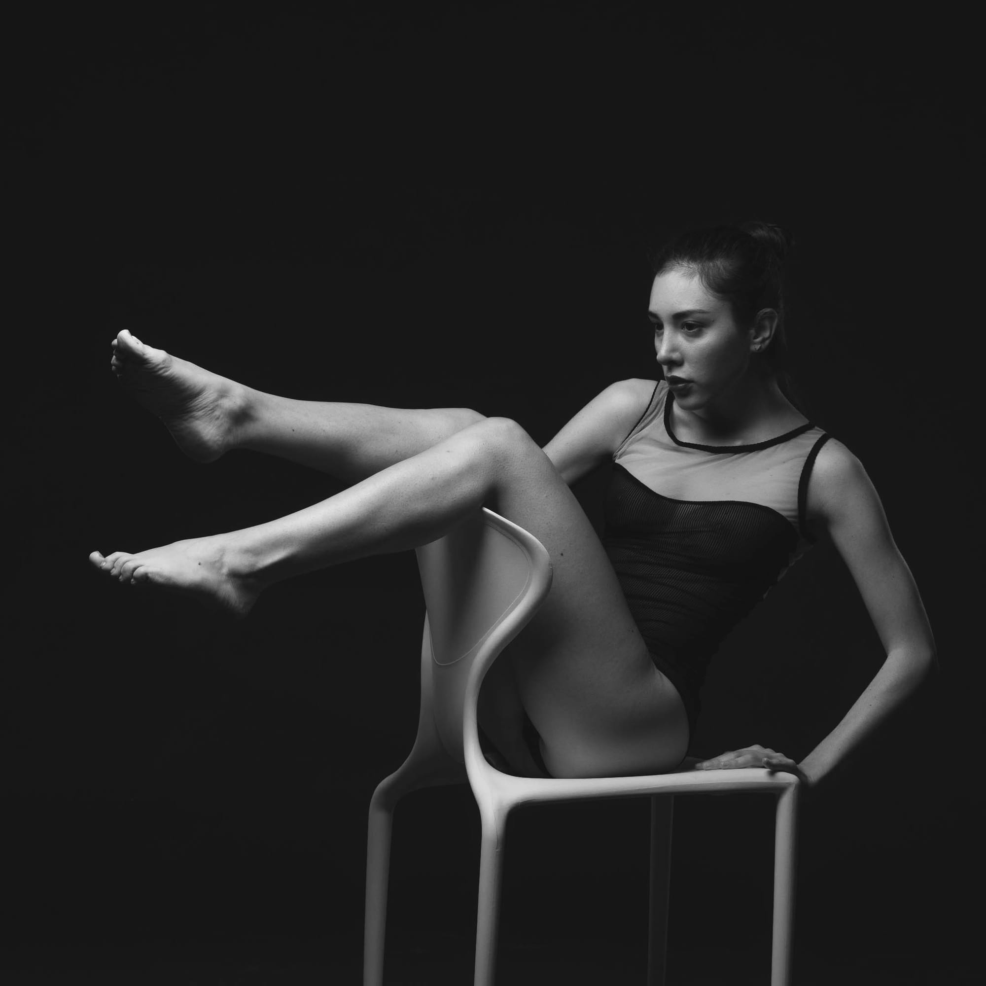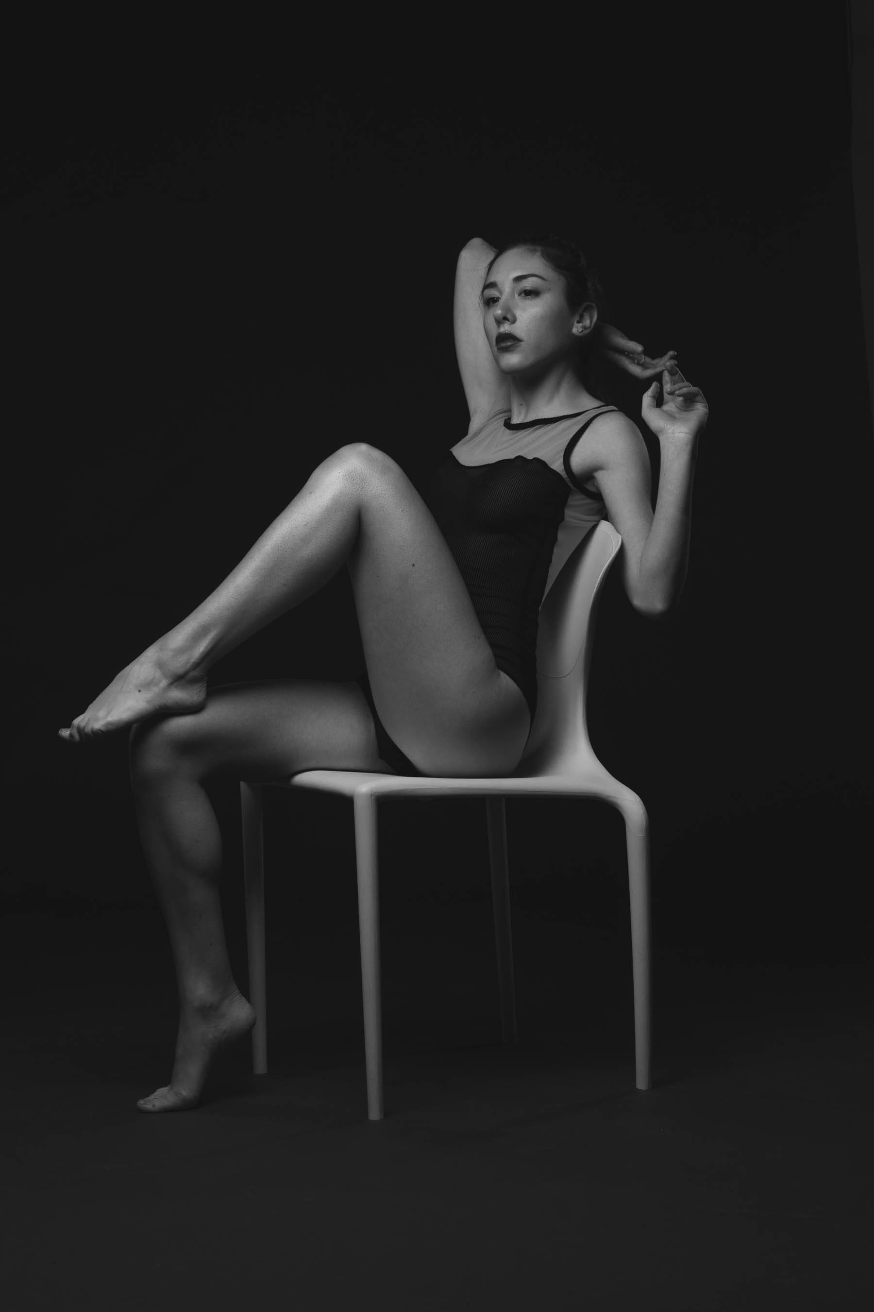 NG Barbi, a leotard and the white chair…