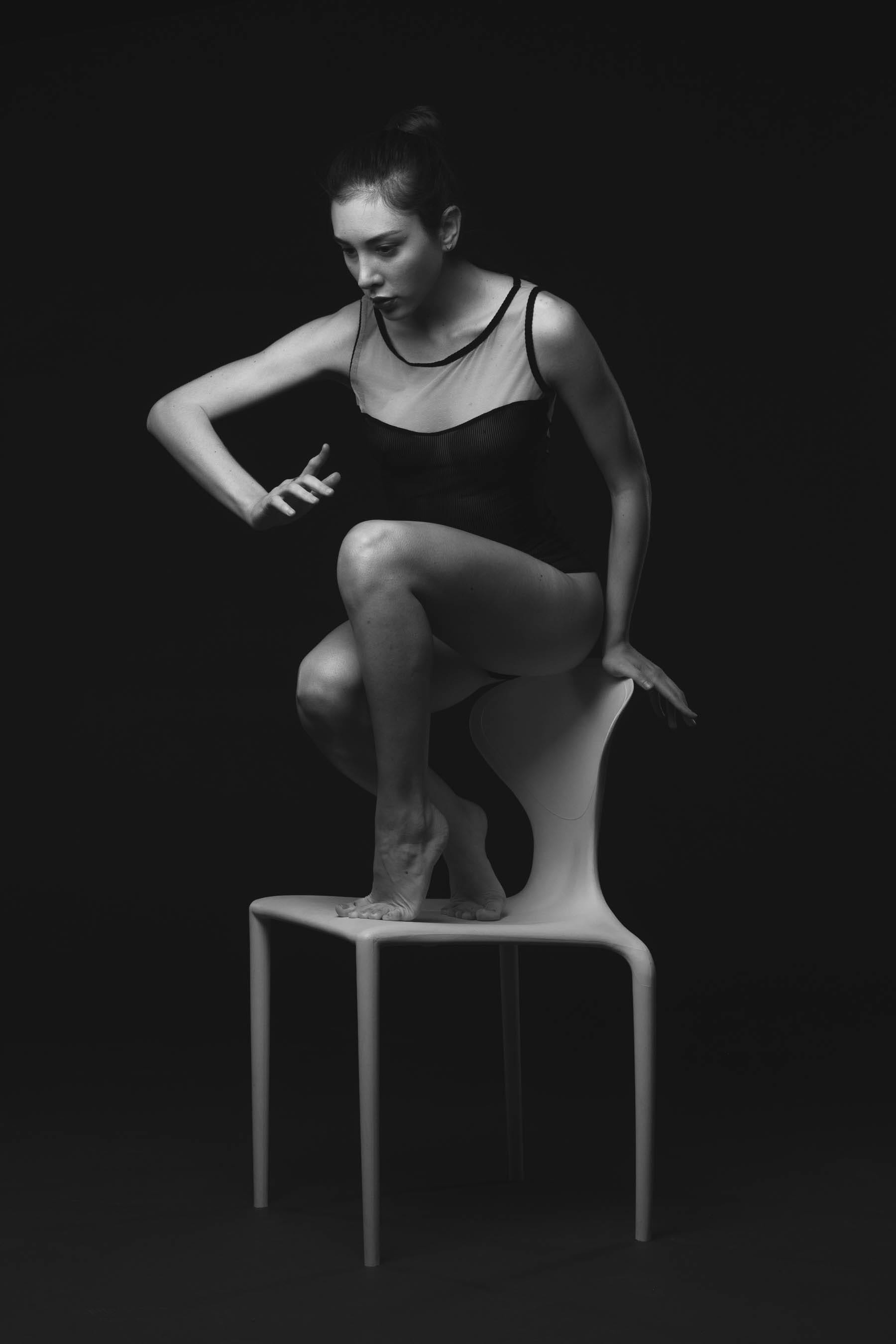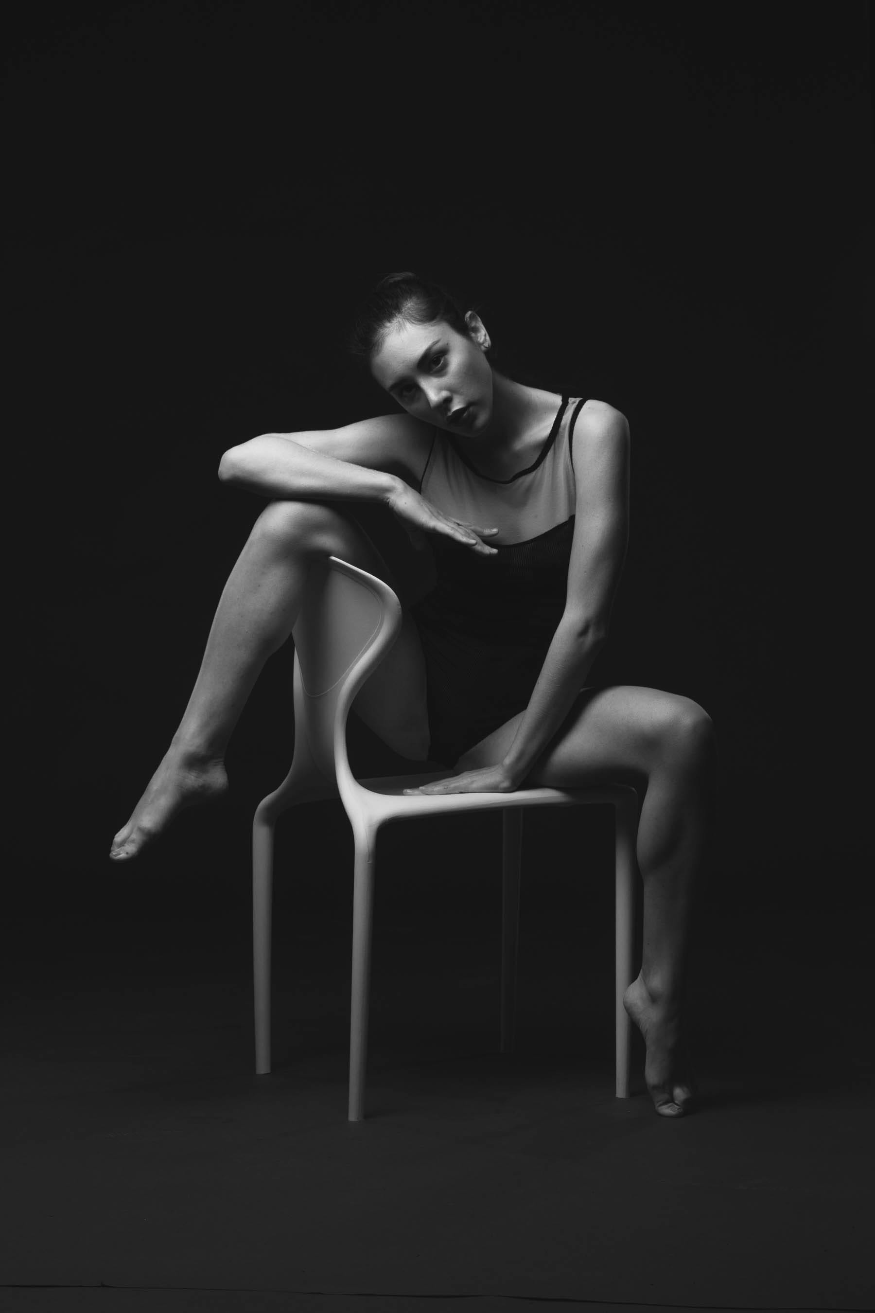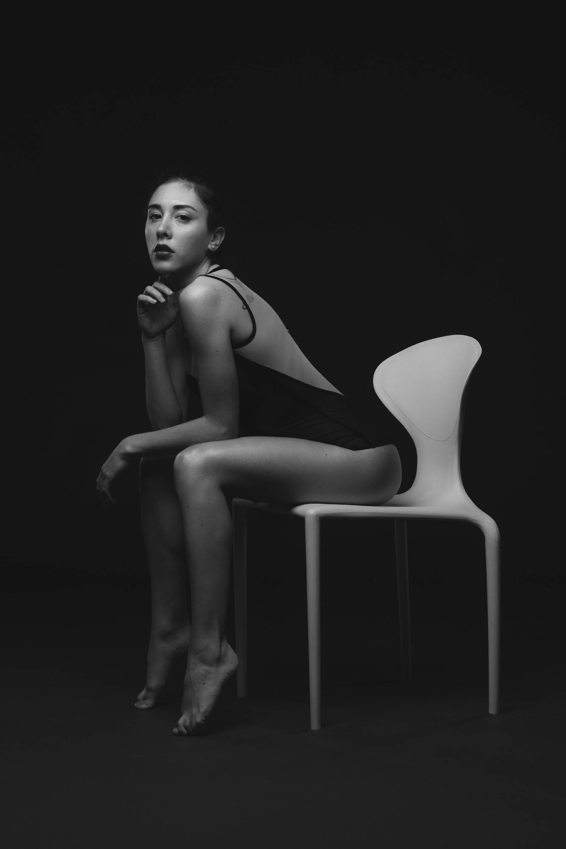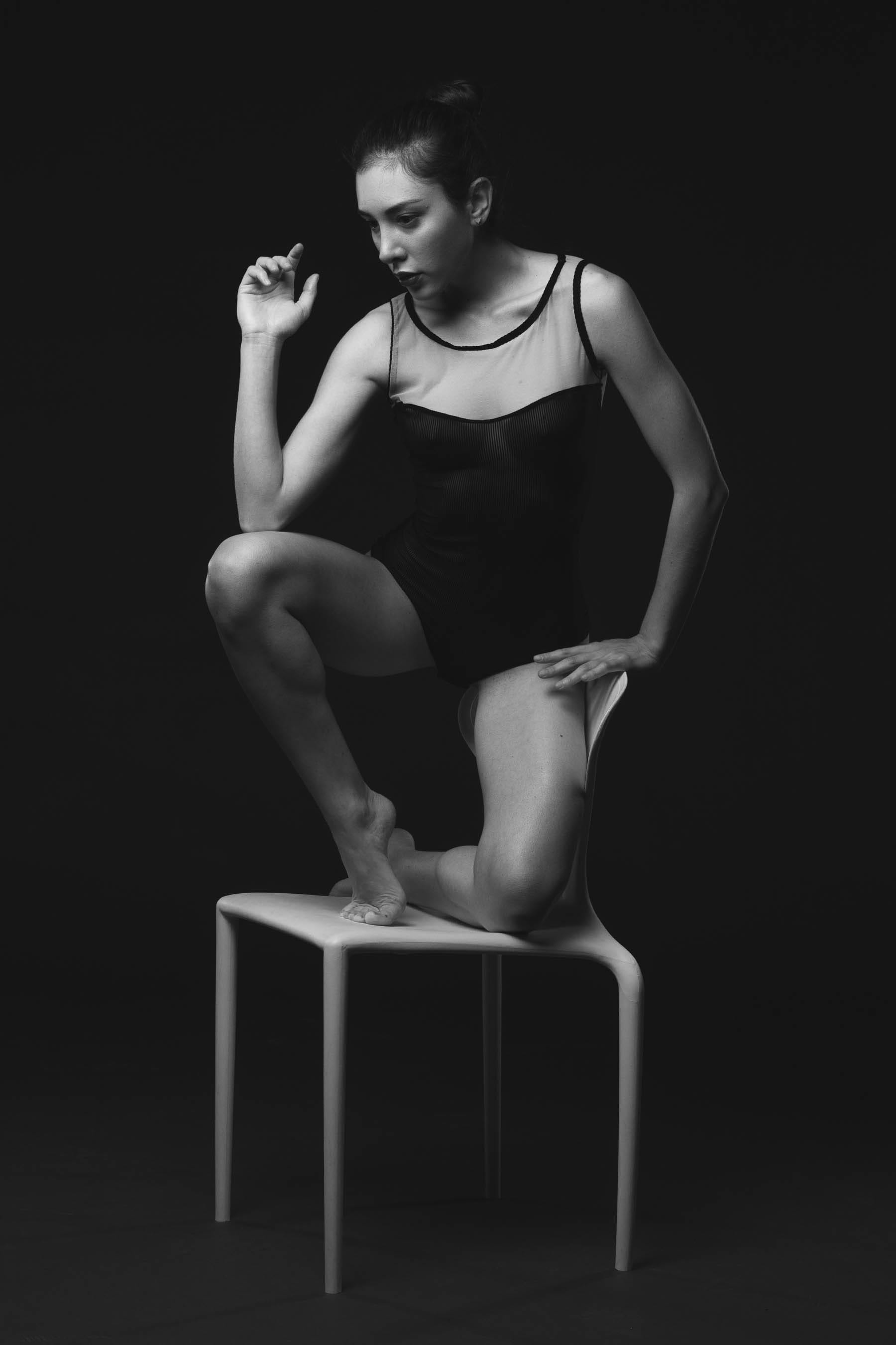NG Barbi, a leotard and the white chair…